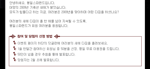 2009년 한 해는 더 고객님들께 사랑받을 수 있도록 노력하겠습니다.